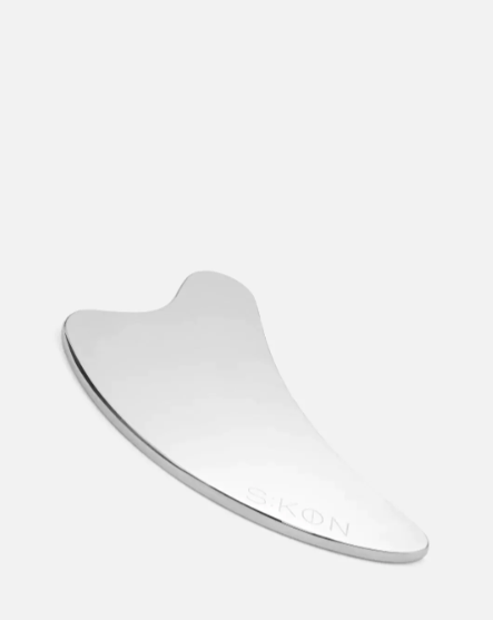 Her fås den i metal. En Gua Sha bruges til at optimere blodgennemstrømningen og lymfedrænage. Det hjælper affaldsstofferne med at blive transporteret væk fra ansigtet, hvilket giver en smuk glød og reducerer hævelser.